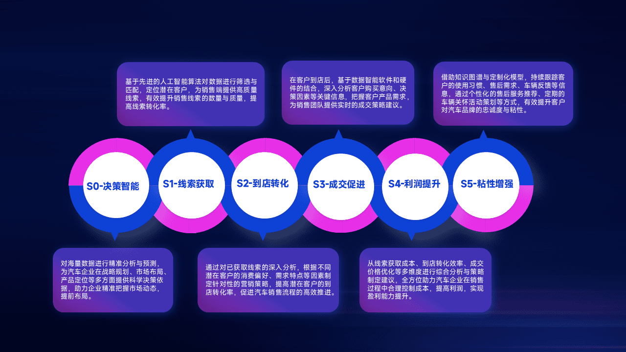 通过拓宽潜在客户来源、、、优化线索分配并提高到店转化率,,,以增强销售效率。。。。同时,,利用线索数据不断优化分析模型,,,有效提升转化率,,扩大营销影响力。。。